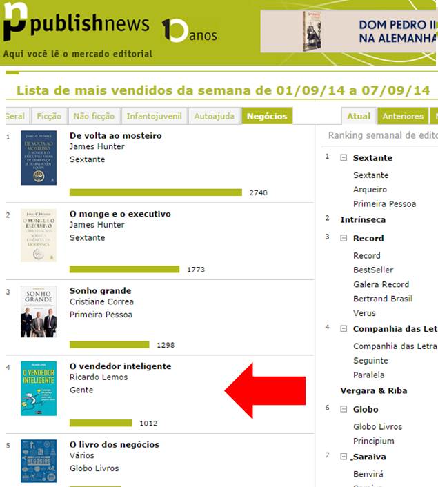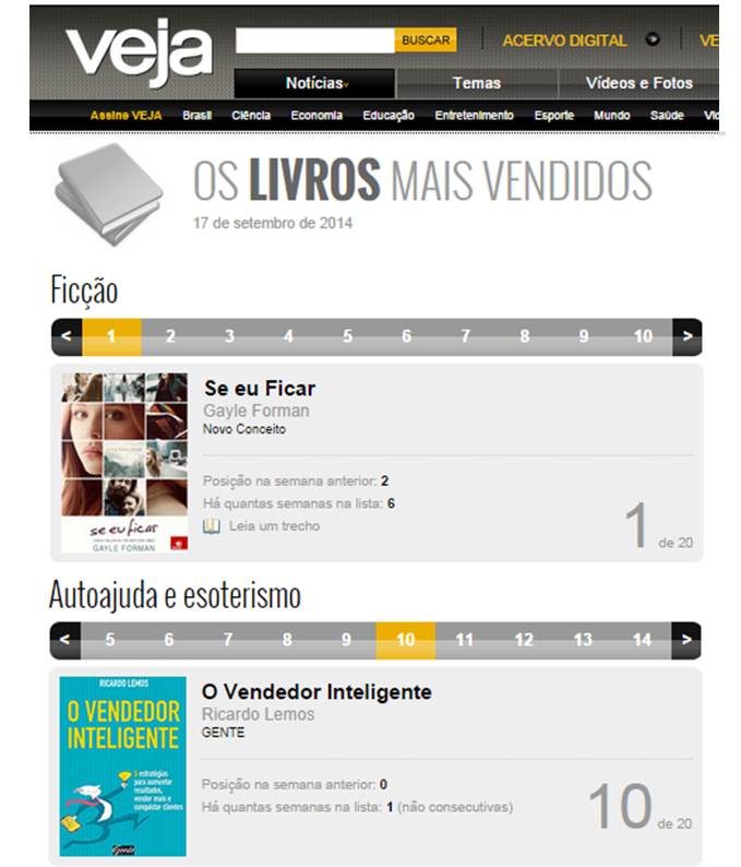 Este livro este em duas listas de livros mais vendidos do país.
